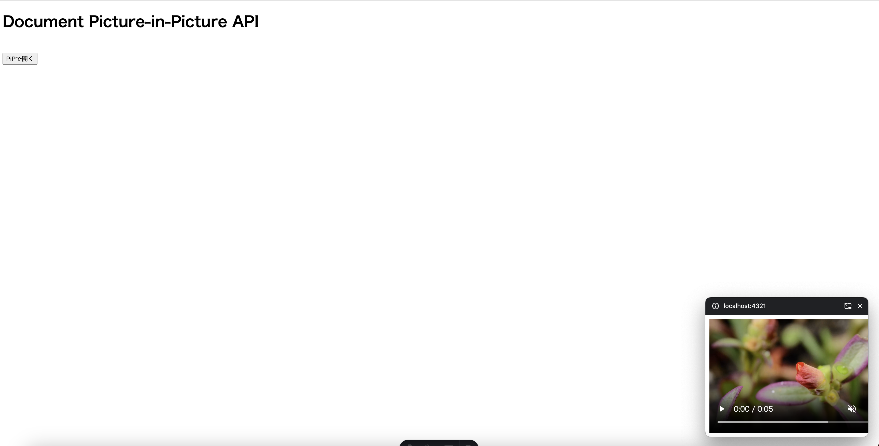 「PiPで開く」を押下するとPicture-in-Pictureの表示になる実装です。
