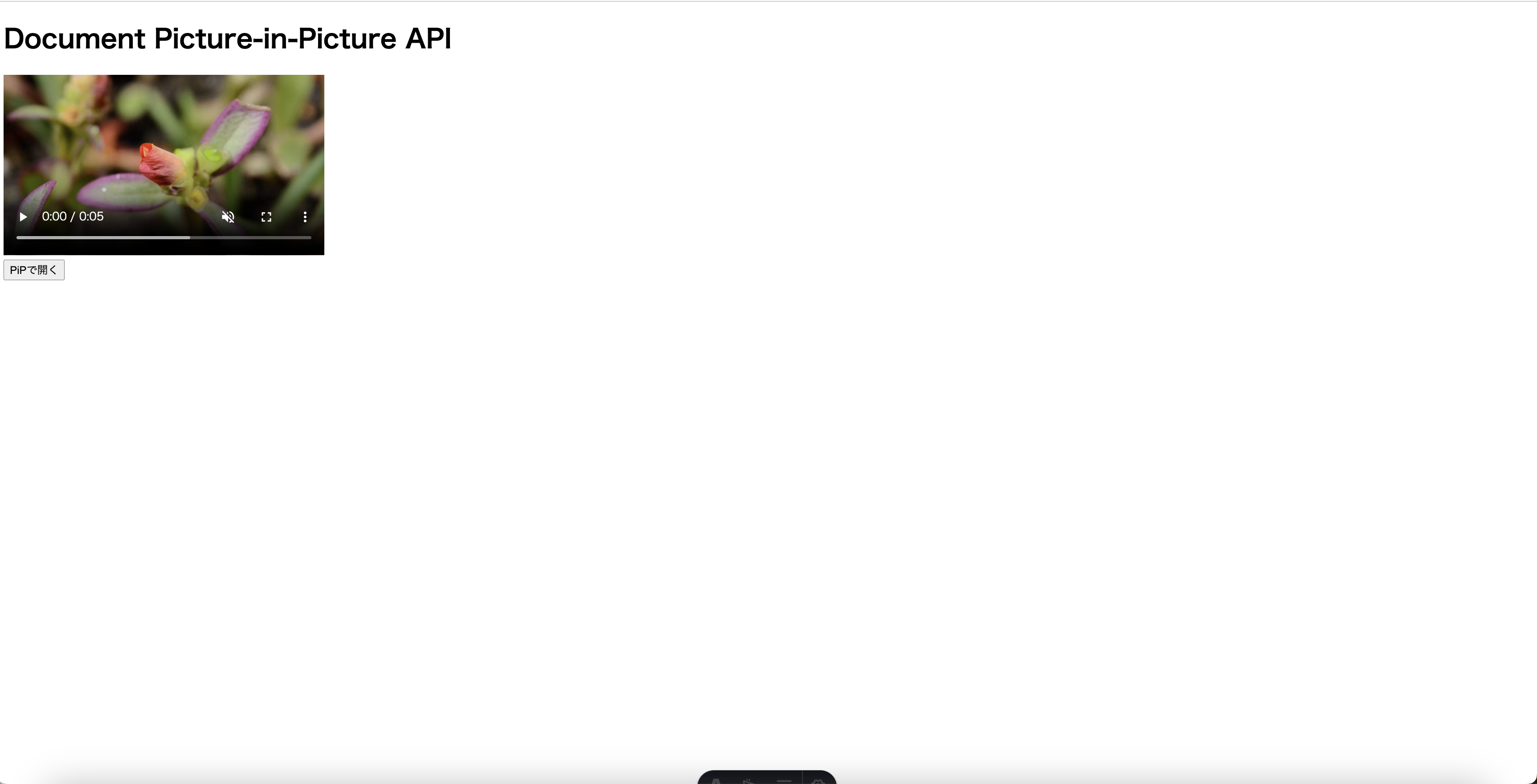 「PiPで開く」を押下するとPicture-in-Pictureの表示になる実装です。
