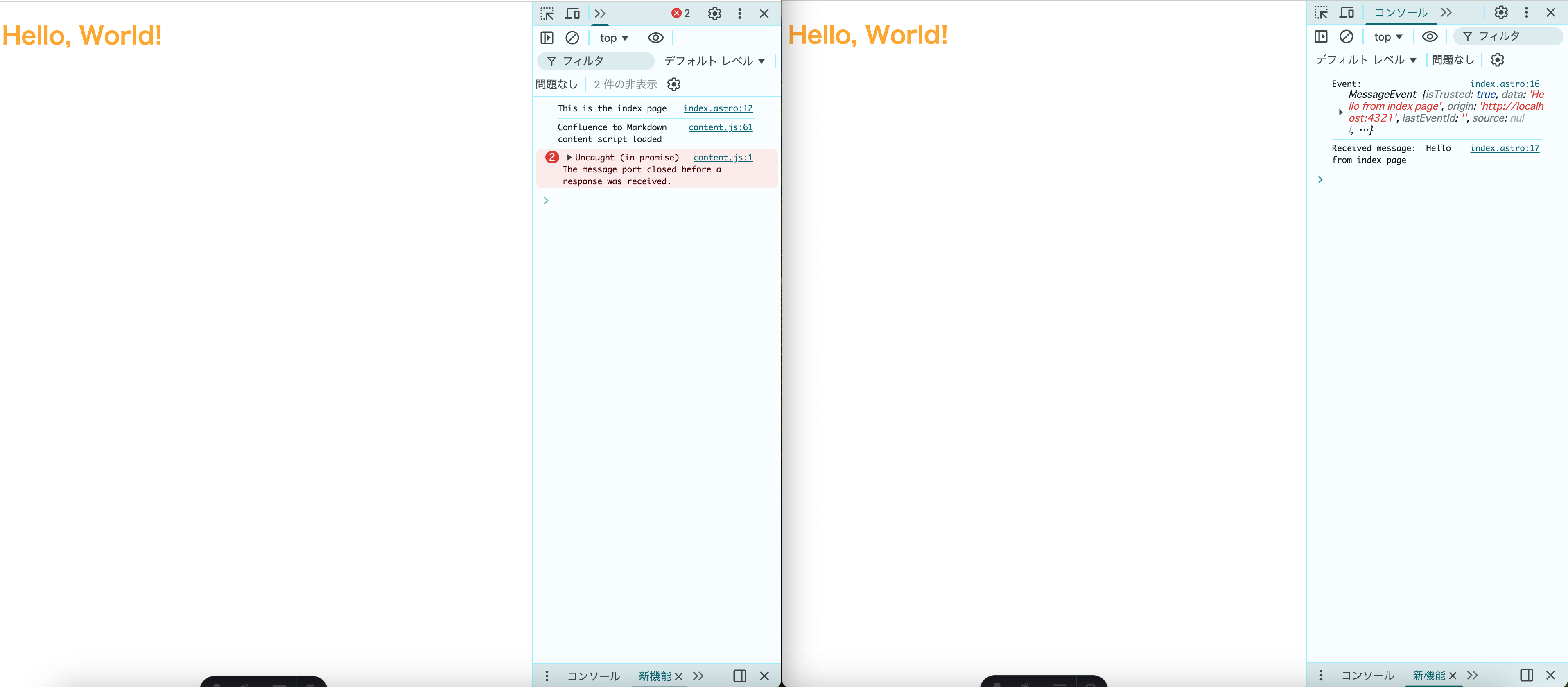 - 同じオリジンのページを別タブで複数開いている状態で片方の画面をリロード a. 下記の画像では左側の画面をリロード